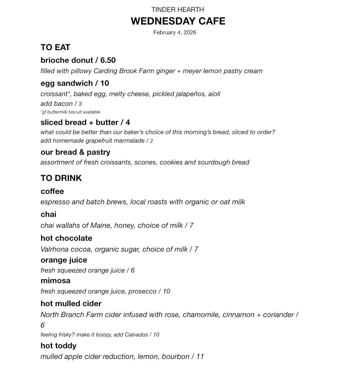 Check out these menus, then continue reading below to hear about our planned winter closure.