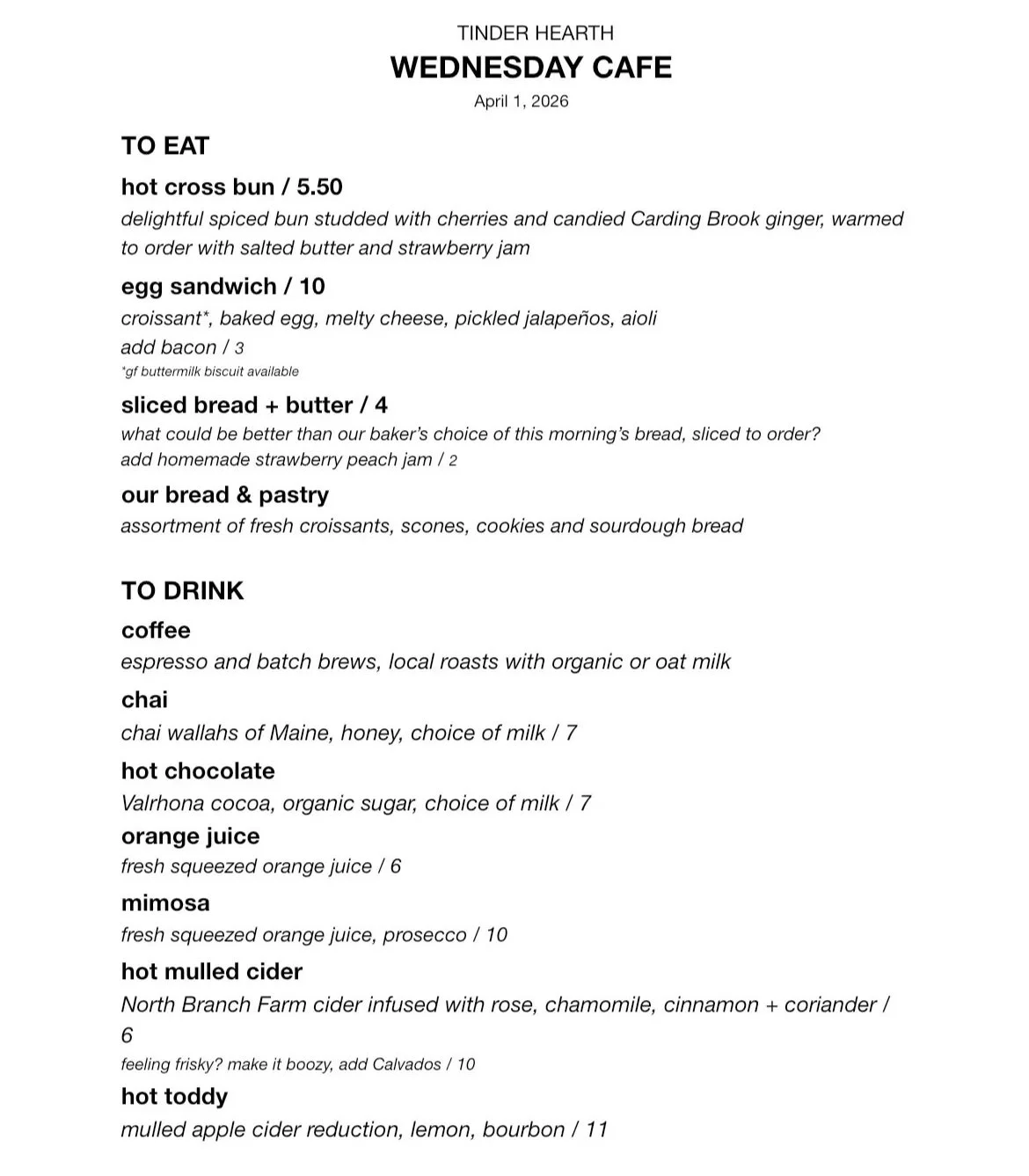 THIS WEEK IN THE BAKERY - We are VERY excited about HOT CROSS BUN season. Baker Kate says that it’s bad luck to bake them after Easter, so with the holiday coming early this year we are making the best of it, and baking them on both Wednesday and Saturday this week! We will have a limited amount available at the cafe on Wednesday—you’ll want to order one with butter and jam, yes please. On Satruday we will have 6-packs to take home for your feast table—PREORDERS for those open on Wednesday— and you will find them on the shelf for sale on Saturday here at the bakery and at the winter farmers’ market in Blue Hill. They’re also on the Saturday brunch menu—chef’s got them featured in a playful little bacon little sandwich.