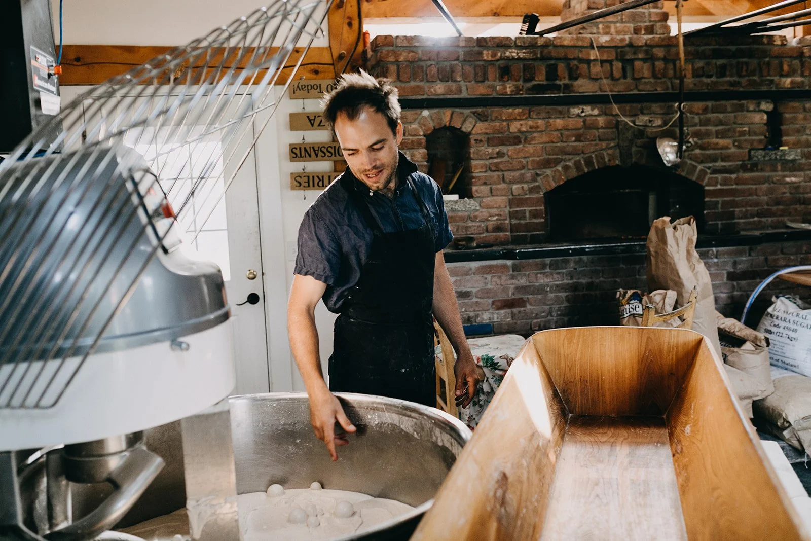 Timmy at the dough mixer circa 2018 photo by Emily Delamater
